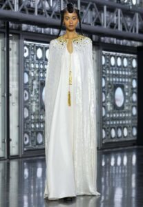 “Les Cieux” stands as a testament to Maison Sara Chraibi’s ability to create couture that is both rooted in tradition and forward-looking, offering a refreshing vision of elegance for the Spring/Summer 2025 season