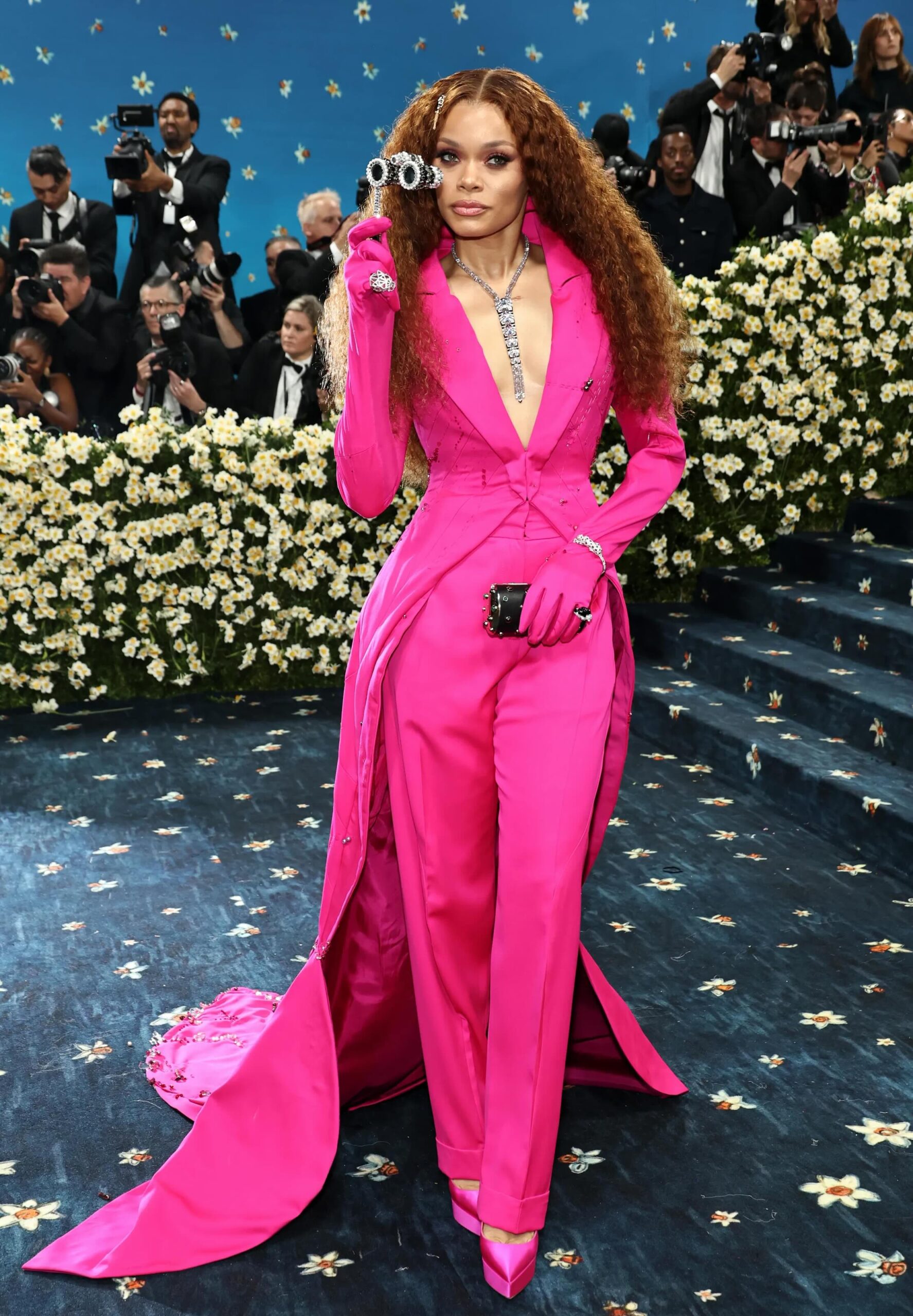 Andra Day embraced the theme in a custom pink Jérôme LaMaar dress, adorned with Cartier jewels. She expressed that the look made her feel “at home,” honoring Black artists and creatives who preceded her .Marie Claire