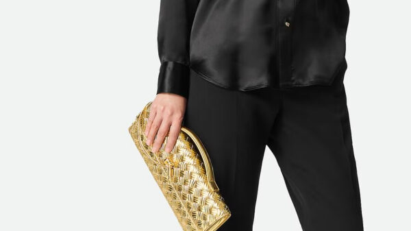 The Bottega Veneta Gold Andiamo Clutch delivers the kind of elevated glamour that instantly transforms an entire look. Sleek, radiant, and undeniably sophisticated, this...