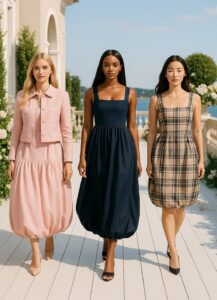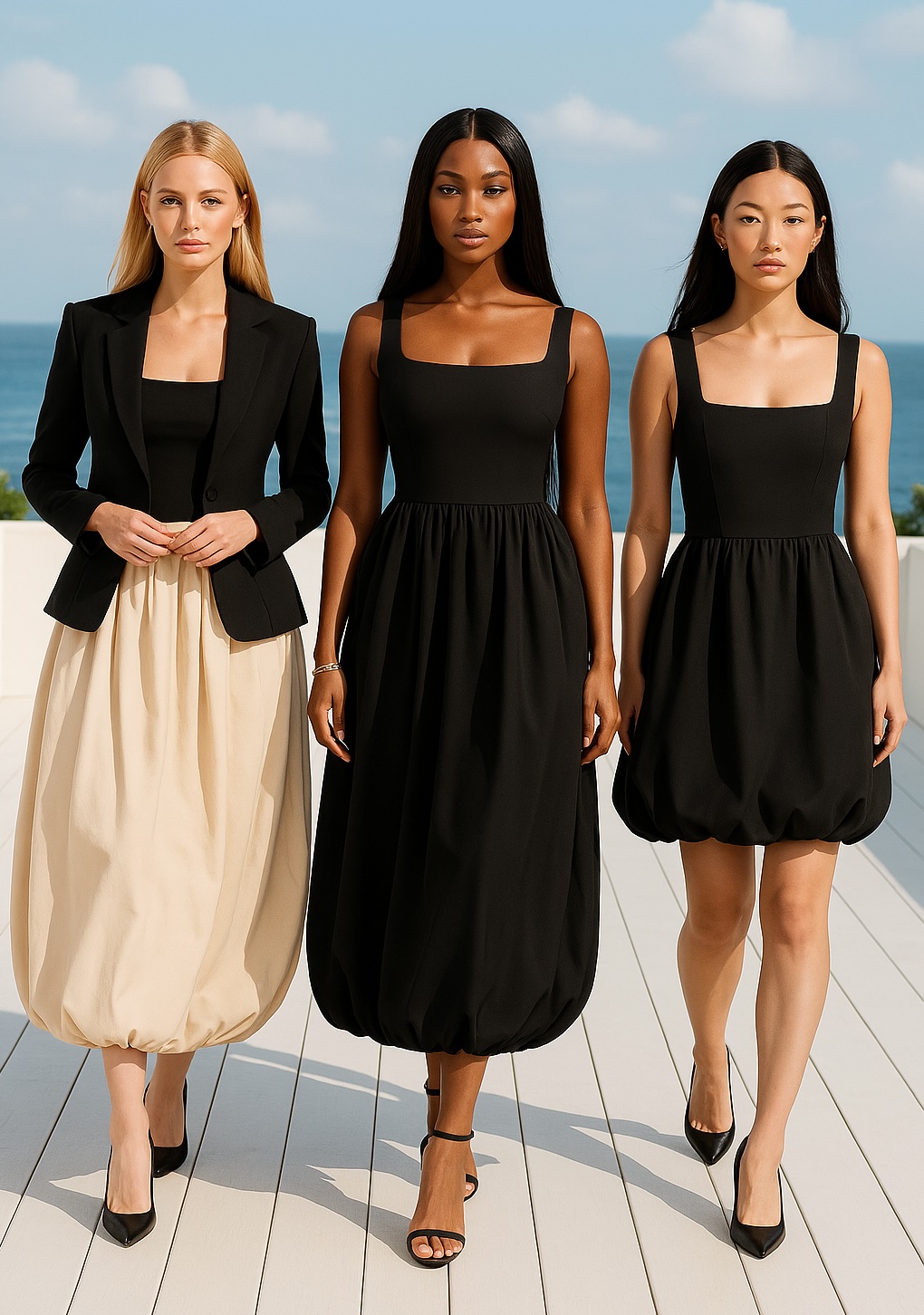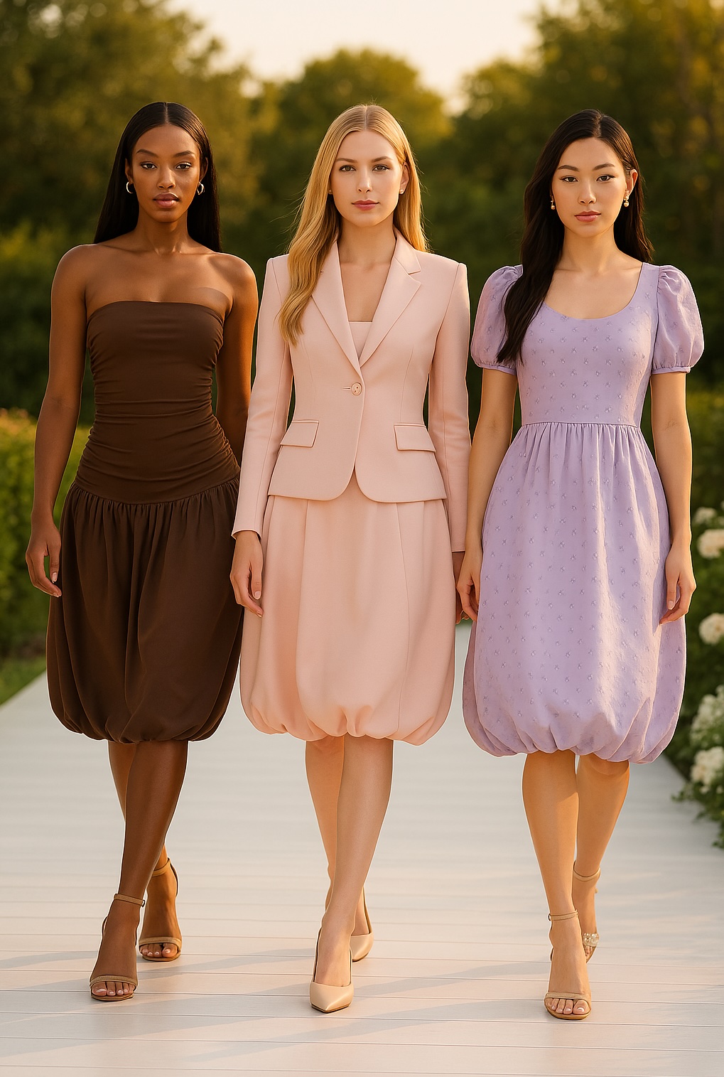 Whether you’re aiming for casual chic or elevated elegance, bubble silhouettes offer versatile styling options. Here’s how trend-conscious fashion lovers are wearing them: