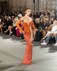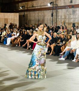 What made her runway presentation especially memorable was the way the collection merged fantasy with fashion power. These were not simple gowns. These were looks built to create a moment. The silhouettes, the glamour, and the overall confidence of the garments made Giannina Azar one of the strongest highlights of the evening. We adore her fab gowns because they brought exactly what a couture showcase should deliver: sparkle, drama, and elevated sophistication with strong visual impact.